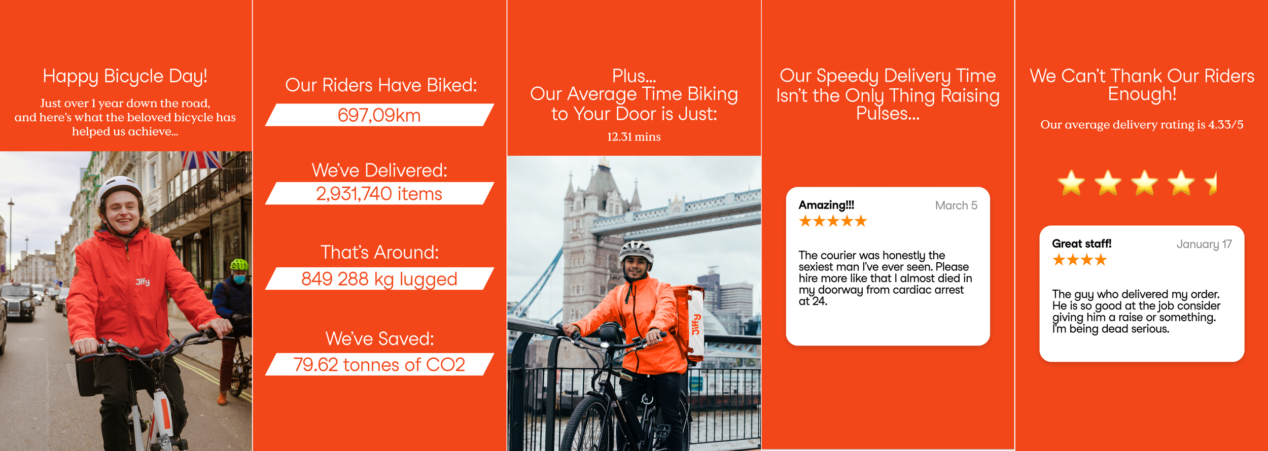 At Jiffy (originally an on-demand grocery store), I created energetic, bright orange Instagram feed posts for key campaigns including their first Tesco Price Match and Easter competition. I also worked on In-app and Instagram Stories content featuring company metrics and entertaining customer feedback.